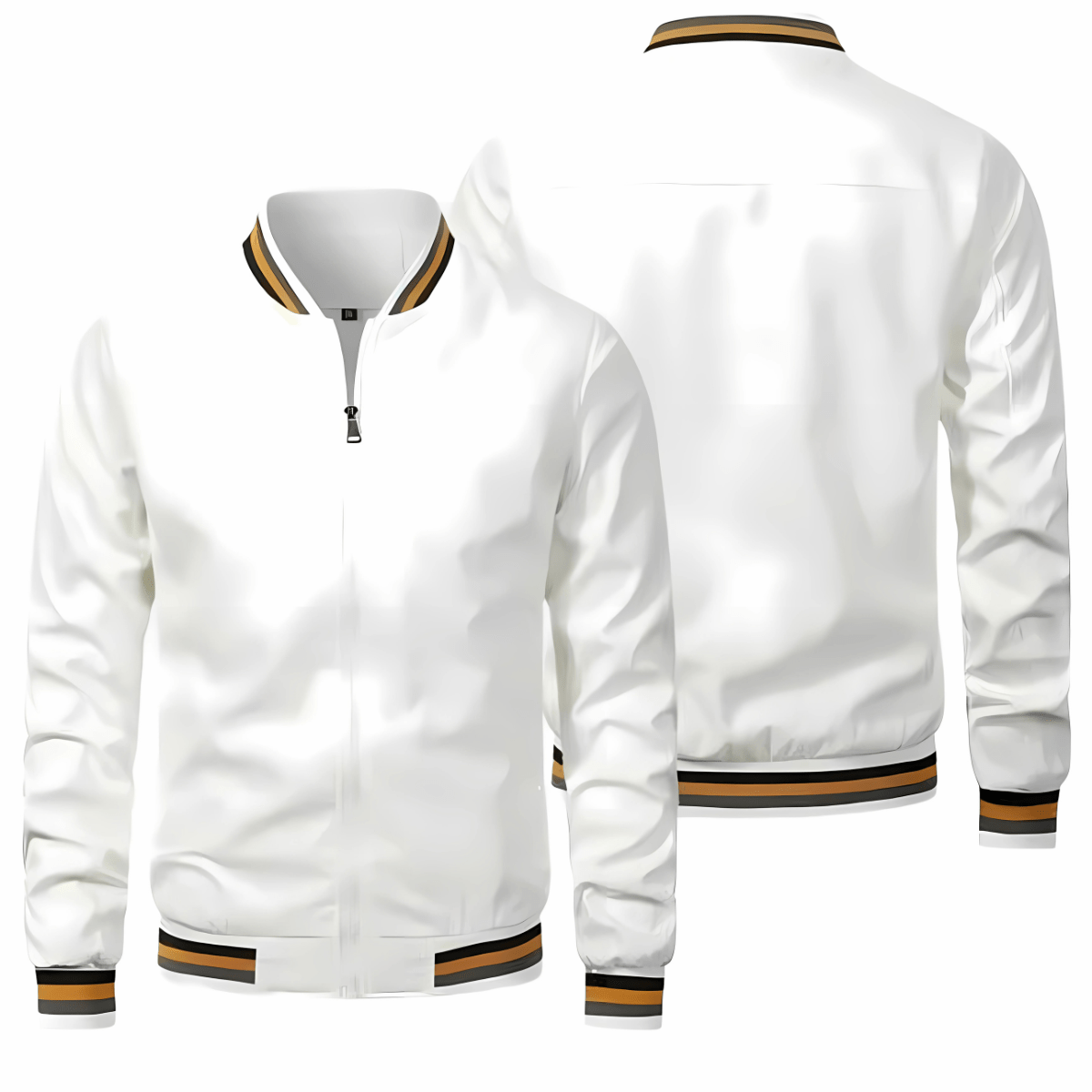 Meet the jacket that does it all — lightweight enough for daily wear, windproof enough to brave those unexpected gusts. Crafted from durable nylon with a smooth matte finish, this jacket brings together urban edge and practical function. With its full-length zipper, minimalist collar, and ribbed cuffs/hem striped with varsity flair, it delivers a clean silhouette without compromising comfort.
