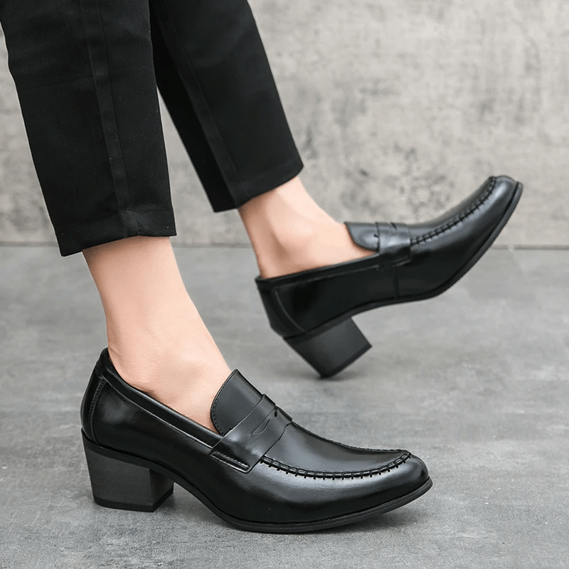 Stride like a gentleman and elevate your wardrobe with these Italian-inspired loafers crafted from genuine leather that whispers luxury. With artisanal stitching and a sturdy block heel, they blend timeless elegance with all-day comfort for any occasion.