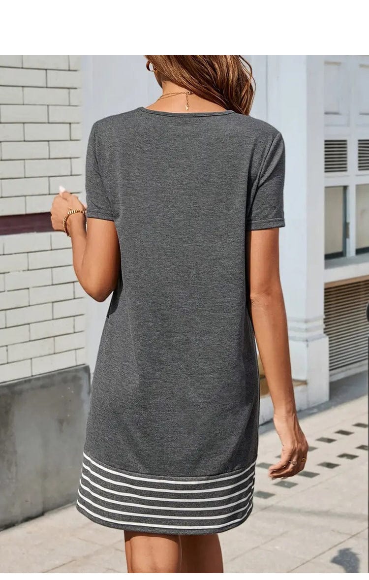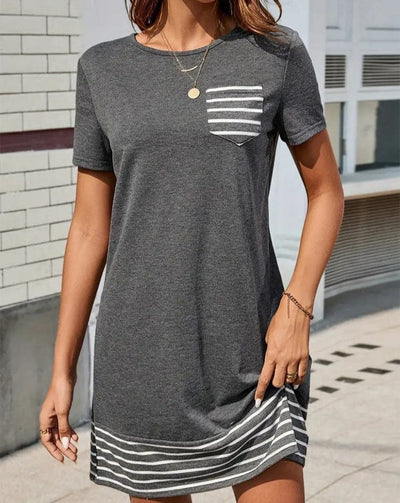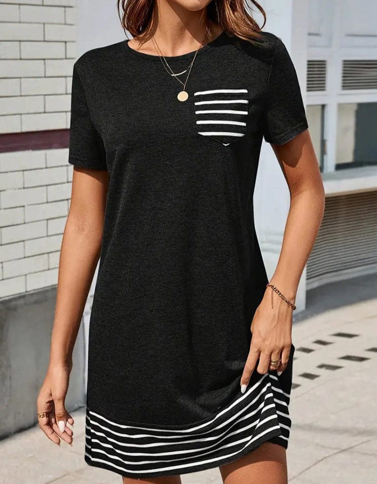 This dress blends casual charm with a dash of Parisian flair—thanks to that cheeky striped pocket and hem. Slip it on, and suddenly coffee runs feel like catwalks.