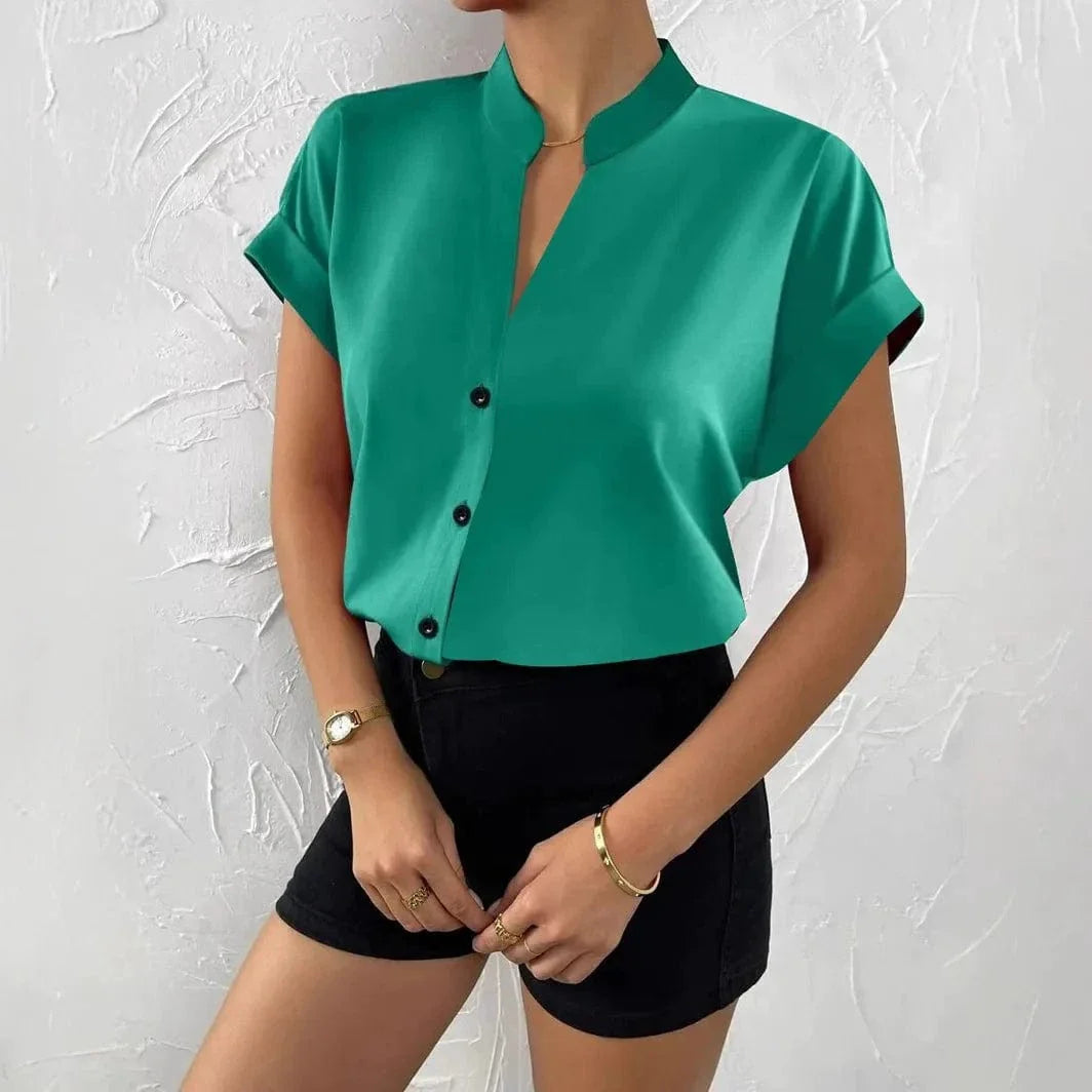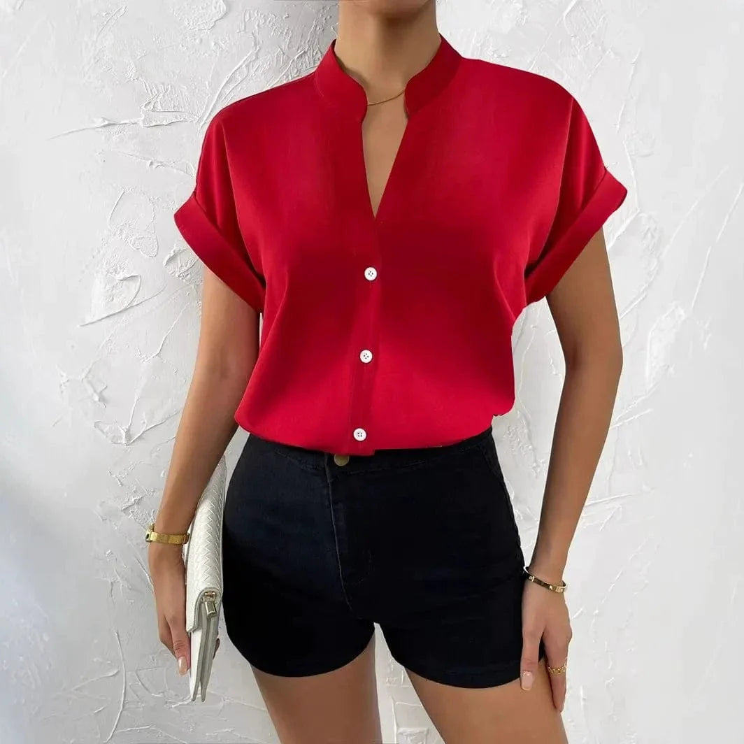 • Versatile Button-Down Design - Classic collar with flattering V-neck styling that transitions seamlessly from office to weekend